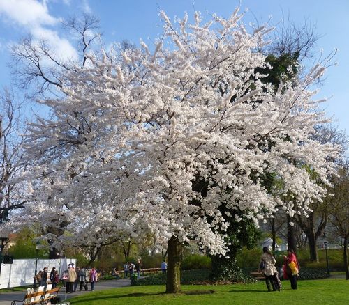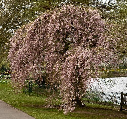 Возможно, вы остановите свой выбор на японских вишнях. У P. «Amanogawa» (высота б м, цветет розовыми цветками в мае, колонновидная крона) ветви направлены вверх. У P. «Kikushidare Sakura» (высота 4,5 м, цветет розовыми цветками в апреле, поникающие ветви), напротив, плакучая крона. Есть много других японских вишен, самая популярная из них — P. «Kanzan», которую продают также под названиями «Sekiyama» и «Hisakura» (высота 6 м, цветет махровыми розовыми цветками в апреле, бронзовая листва, ветви круто устремлены вверх). Среди других японских вишен можно назвать P. «Shirotae» (высота б м, цветет белыми душистыми цветками в апреле, раскидистая крона) и P. «Tai Haku» (высота 10,5 м, цветет крупными белыми цветками в апреле, раскидистая крона).