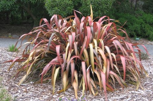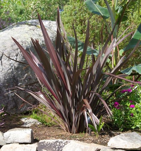 Это красочное растение с мечевидными листьями в зеленых, желтых, бронзовых и лиловых тонах поможет обогатить архитектурный облик сада, придав ему тропический оттенок. Листья, достигающие у взрослого растения 0,5 м-1.5 м в длину, образуют торчащие над землей эффектные розетки. В первый год после посадки формиум почти не растет, но через несколько лет из него получается отличное фокусное растение. Листовую розетку на зиму следует прикрывать.
