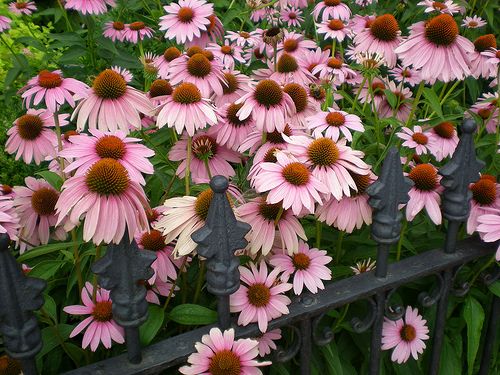 Позднецветущий многолетник, близкий родственник рудбекии. У обоих растений соцветия с выпуклой серединкой из трубчатых цветков и отогнутые краевые язычковые цветки, но у эхинацеи они лиловые, розовые или белые, в то время как у рудбекии — желтые или оранжевые. Перед посадкой в почву вносят компост, летом подкармливают.