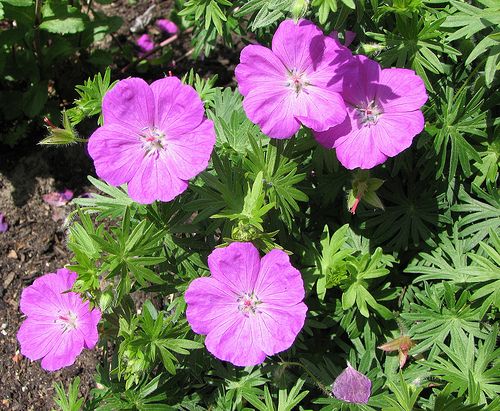 Садовую герань не стоит путать с теплолюбивой пеларгонией, которую в народе тоже называют геранью. Садовые герани — холодостойкие многолетние растения, которые выращивают как почвопокровные растения. Многие герани хорошо растут в полутени, другие предпочитают солнце. Есть высокие растения для бордюра, а также карлики для альпинария, с яркими цветками и (или) красивыми листьями. Все герани неприхотливы и хорошо переносят засуху. Листья зеленые, красные, серые или бронзовые, раздельные или лопастные. Цветки, как правило, чашевидные, белые, розовые, голубые, розовато-лиловые или красные, на лепестках могут быть прожилки. Помимо видов с отмирающей на зиму листвой есть и такие, у которых листья зимуют.