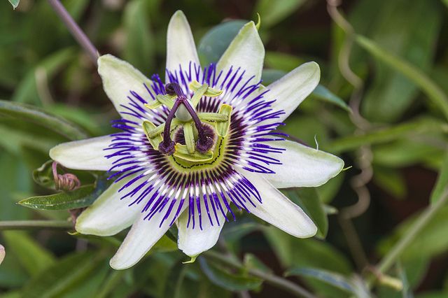 Цветок пассифлоры устроен сложно, однако несмотря красочный на хрупкость цветка, само растение нежным не назовешь. Это сильная лиана, которая займет все свободное пространство, если каждую весну ее не обрезать самым решительным образом. Листья глубокорассеченные, на стеблях есть усики, цветет летом, цветки недолговечны.