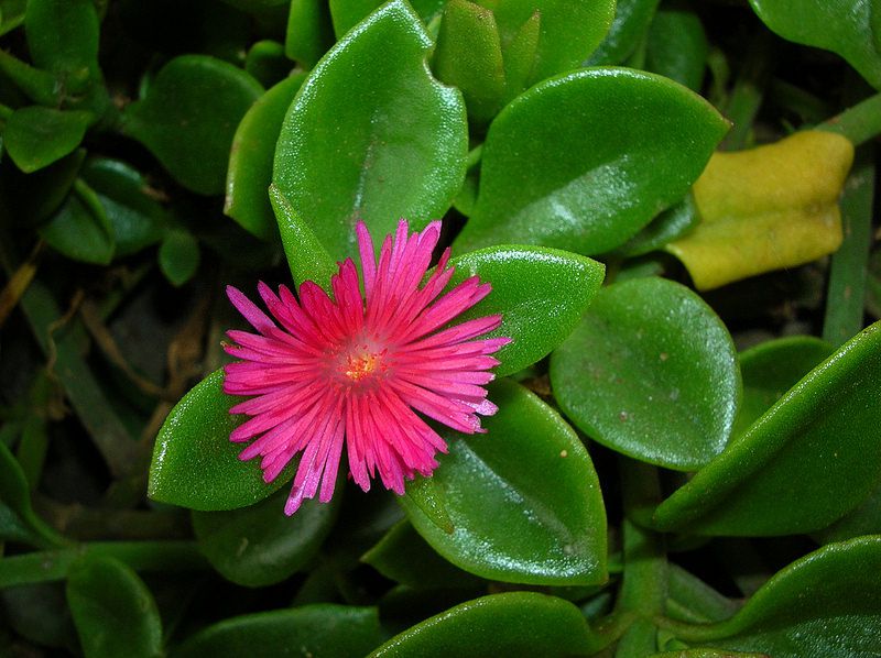В последнее время эту теплолюбивую родственницу садового мезембриантемума стали выращивать как коvнатное растение. Аптения — низкорослый стелющийся суккулент с листьями, словно обсыпанными сахарной пудрой. Ее можно посадить у основания более высокого растения. Летом среди листьев появляются крошечные цветки.