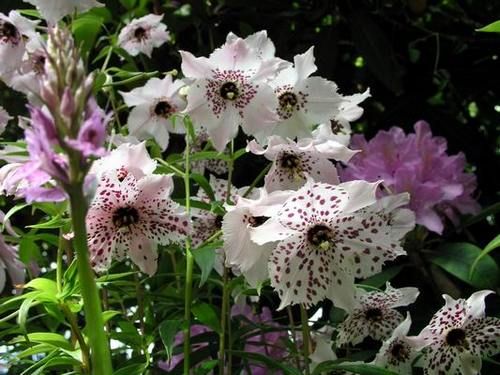 Виды и сорта: Проще всего вырастить цветущий в июне Н. сальвинский (N. saluenensis) высотой 90 см. У него розовые цветки диаметром 8 см с белой с темно-бордовым крапом серединкой. Н. открытый (N. aperta) ниже ростом (30-60 см), на верхушке каждого стебля находится по пять-шесть цветков. Листья Н. Мэра (N. mairei), или Н. барсового (N. pardanthina), расположены мутовками, у цветков диаметром 8 см темно-пурпурная серединка и бахромчатые «лепестки»; высота цветоноса 90 см.