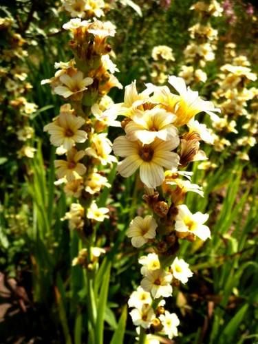 Виды и сорта: Бордюрный С. полосатый (S. striatum) высотой 60 см цветет в июне-июле. Бледно-желтые цветки собраны в мутовки на прямых цветоносах; у сорта «Aunt May» листья с кремовыми полосами. Самый маленький из видов — С. коротконожковый (S. brachypus) достигает 10 см в высоту и разрастается до 15 см в ширину, цветет желтыми цветками в июне-сентябре. Такие же цветки у более высокого С. калифорнийского (S. californicum). Два сходных вида — С. узколистный (S. angustifolium) и С. бермудский (S. bermudianum) достигают 20 см в высоту и разрастаются до 30 см в ширину; появляющиеся в июне-сентябре цветки голубые, но у С. бермудского они с желтым зевом. У С. «Mrs Spivey» белые цветки, у С. Дугласа (S. douglasii) пурпурные колокольчатые цветки.