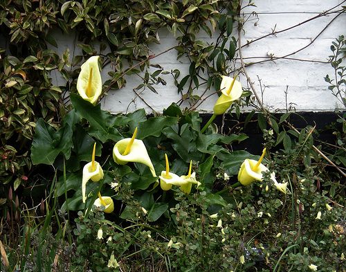 Виды и сорта: Наиболее популярен сорт «Marmoratum» А. итальянского (A. italicum) с зеленовато-белым покрывалом и волнистыми по краям зимующими листьями с прожилками и серебристыми пятнами. Высота растения 50 см, диаметр куста 25 см. Более эффектен А. критский (A. creticum) с желтым покрывалом.