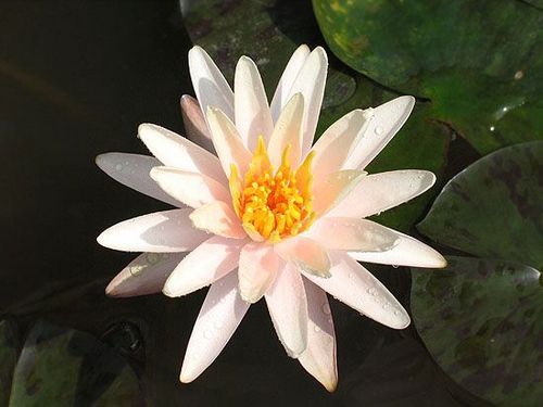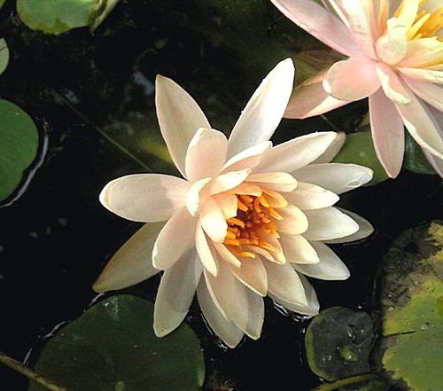 Кувшинка селекции Кирка Строна 1997 г. Цветок от персикового до светло-розовый, форма цветка звездновидная, цветок 10-13 см в диаметре, соцветие располагается около 10 см над водой. Листья овальные, темно-зеленые с коричневыми пятнами, размер листа 10x15 см.