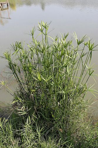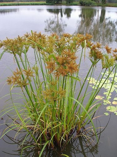 Член семейства осоковых. Линейные листья отходят от верхушки стебля наподобие спиц зонтика. Летом появляются разветвленные соцветия из мелких коричневых или красноватых колосков. С. длинную (С. longus) часто используют для укрепления берегов естественных водоемов и для аранжировок. Она быстро разрастается, достигает 1 м в высоту; глубина посадки — 8-12 см. Темно-зеленые листья колючие и шершавые. У С. сильной (С. vegetus) более широкие листья, стебли достигают в высоту всего 30-60 см, поэтому она больше подходит для садового пруда средних размеров. Высаживают в пруд на глубину до 10 см или в болотце.