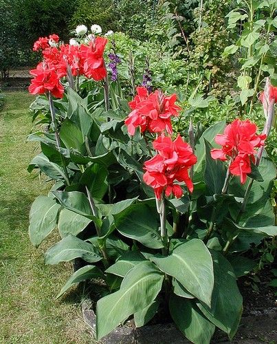 Корневищное растение, замечательно выглядит в центре клумбы или контейнера. Листья напоминают по форме весло, часто окрашены в разные цвета, в длину достигают 30 см и более. Яркие цветки до 12 см в диаметре, цветение продолжается с июля до заморозков. Высаживают на защищенном от ветра солнечном месте.