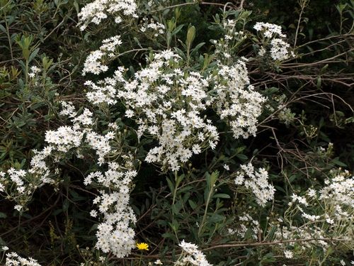 Виды и сорта: Морозостойкая О. Хааста (О. haastii) высотой около 1,5 м, листья которой похожи на листья самшита, обильно цветет в июле-августе белыми соцветиями. Вынослива также цветущая в июле О. монетчатолистная (О. nummulariifolia), вырастающая до 1,5 м, которая отличается мелкими соцветиями и густой желтовато-зеленой листвой. У цветущей в июне высокорослой (2,5 м) О. крупнозубчатой (О. macrodonta) серовато-зеленые листья, напоминающие листья падуба. О. сциллонская (О. scilloniensis) цветет в мае. У О. огненнохохолковой (О. phlogopappa) есть сорта с голубыми («Comber's Blue») и розовыми («Comber's Pink») соцветиями.