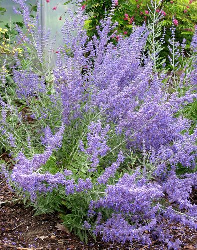 Виды и сорта: В культуре один вид — П. лебедолистная (P. atriplicifolia), с побегами высотой около 1 м и соцветиями лавандово-голубых цветков длиной около 30 см. Ее голубые соцветия и желтые осенние листья в конце сезона добавят красок травянистому или смешанному бордюру. Главный недостаток растения заключается в том, что из-за ежегодной весенней обрезки под корень молодые побеги отрастают только к началу лета. Этот недостаток легко преодолеть, если посадить перовскию на среднем или заднем плане травянистого бордюра. У сорта «Blue Spire» соцветия крупнее, чем у исходного вида.