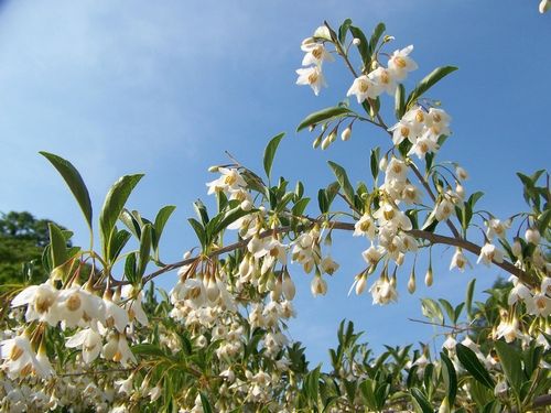 Виды и сорта: Культивируют в основном С. японский (S. japonica), который считается наиболее надежным и красивым из морозостойких видов. Это изящный раскидистый кустарник с поникающими кончиками ветвей и овальными блестящими листьями. Белые соцветия расположены по всей длине ветвей. У сорта «Pink Chimes» цветки бледно-розовые. С. обассия (S. obassia) отличается от С. японского узкой формой куста и почти круглыми листьями. Душистые белые цветки собраны в кисти длиной 20 см. Высота самого низкорослого редкого С. американского (S. americana) не превышает 2 м.
