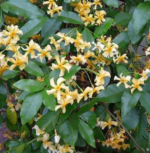 Красивая теплолюбивая лиана. Стебли взрослого растения могут покрывать площадь 6 х 6 м. Душистые цветки похожи на цветки жасмина голоцветкового, собраны в рыхлые соцветия. Цветет летом. Листья блестящие, темно-зеленые. В районах с мягкими зимами высаживают возле стены, выходящей на южную или западную сторону. Увядшие цветки по возможности удаляют. Поврежденные и слабые побеги вырезают в марте.