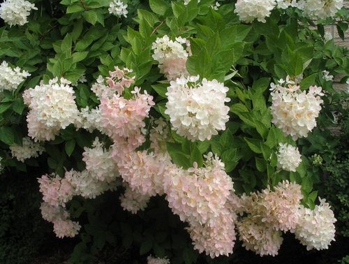 Гортензии. Почти все гортензии, а их более 35 видов, теплолюбивы. Для средней полосы России подходят лишь несколько видов, таких как, например, гортензия метельчатая. Это кустарник, достигающий в высоту 2 метров и имеющий шаровидную крону, овальные листья и пирамидальные метелки соцветий. Соцветия распускаются в конце лета белоснежными цветами, которые к концу цветения меняют цвет на розоватый или палевый. Гортензии любят плодородные, слабокислые, хорошо увлажненные почвы. Размножать данное растение можно черенками и отводками.