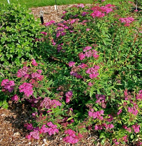 Спирея японская. Цветение этого кустарника начинается в июле и длится более 45 дней. Этот невысокий кустарник с длинными листьями, меняющими цвет на протяжении сезона и мелкими розовыми цветками, которые собраны в густые соцветия, был рожден в Японии и Китае. Растение абсолютно неприхотливо и хорошо размножается как черенками и делением кустов, так и семенами.