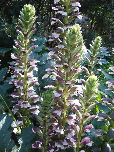 с крупными листьями, белой нижней губой у цветков и острыми колючками. Соцветия используют в букетах как свежесрезанными, так и засушенными. Достигает высоты 2 м, разрастается в ширину до 75 см, цветет в июле-августе. А. мягкий (A. mollis) выше ростом, у него мягкие колючки, но листья и цветки не так красивы.
