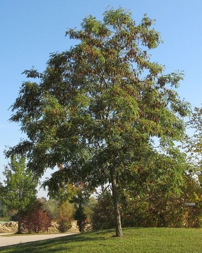 В июне на робинии появляются поникающие кисти душистых цветков, похожих на цветки гороха, однако выращивают ее ради изящной формы кроны и красивой листвы. Робиния, или белая акация, неприхотлива, прекрасно выглядит в со-литерной посадке, но ее следует защищать от ветра, потому что у нее хрупкие ветви. Отмершие или поврежденные ветви вырезают летом (не весной и не зимой!).
