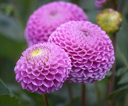 Шаровидные: «Махровые» шаровидные, часто уплощенные соцветия. Краевые язычковые цветки скрученные,с тупым или закругленным концом. Высота до 1,2 м. Диаметр соцветия до 15 см. Сорта: «Alltami CherryЭ» (мелкий красный), «Candy Cupid» (миниатюрный бледно-розовый с лиловым оттенком), «Wootton Cupid» (миниатюрный розовый)