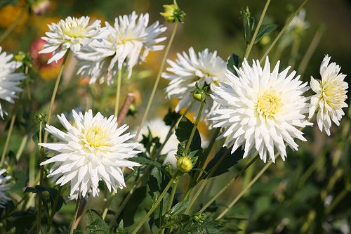 Анемоновидные: Один или более рядов краевых язычковых цветков. Серединка из крупных трубчатых цветков. Высота 60-90 см. Диаметр соцветия до 10 см. Сорта: «Comet» (низкорослый красный), «Lemon Puff» (низкорослый белый с желтым), «Vera Higgins» (низкорослый красновато-коричневый)