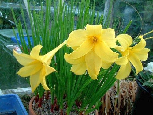 Это растение родом из Южной Америки может разнообразить палитру летних цветов. Душистые трубчатые цветки достигают 8 см в диаметре. К сожалению, растение маловыносливо, луковицы высаживают весной и выкапывают в октябре. До высаживания в апреле хранят в сухом прохладном помещении. Для выгонки высаживают по три луковицы в горшки диаметром 15 см на глубину 1 см. После появления цветков содержат в прохладном месте. Высаживают в апреле на глубину 3 см на расстоянии 15 см. Высота растения 25 см.
