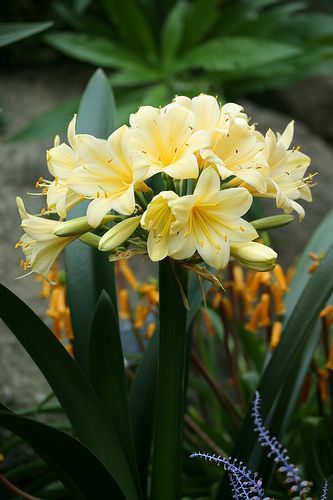 Кливия относится к комнатным или оранжерейным растениям, хотя на лето горшок с ней можно выставлять на открытый воздух. На самом конце толстого цветоноса образуется соцветие из 10-20 цветков. Цветет в конце зимы — начале весны душистыми, направленными вверх колокольчатыми цветками. Растение обычно покупают уже с листьями, но в специализированных хозяйствах можно приобрести луковицы, когда они находятся в состоянии покоя. Чтобы растение каждый год цвело, нужно предоставлять ему зимой отдых в неотапливаемом помещении при минимальном поливе, который только не позволит листьям завянуть. Пересаживают кливию в случае крайней необходимости, когда корни уже не помещаются в горшке. Высаживают в апреле-мае на глубину 1 см по одному растению на горшок. Высота растения 30-45 см.