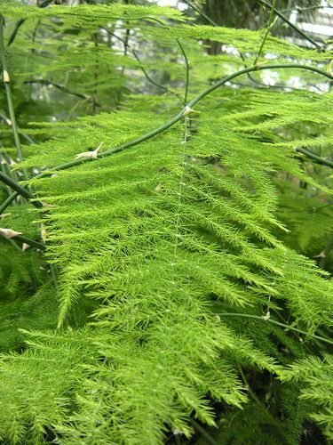 Два распространенных аспарагуса - перистый и густоцветковый ценят за изящные и ажурные ветви, которые часто используют в цветочных композициях. Несмотря на распространенное мнение, они не относятся к папоротникам, а их шиловидные «листья» на самом деле видоизмененные стебли.
