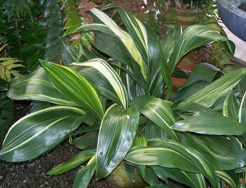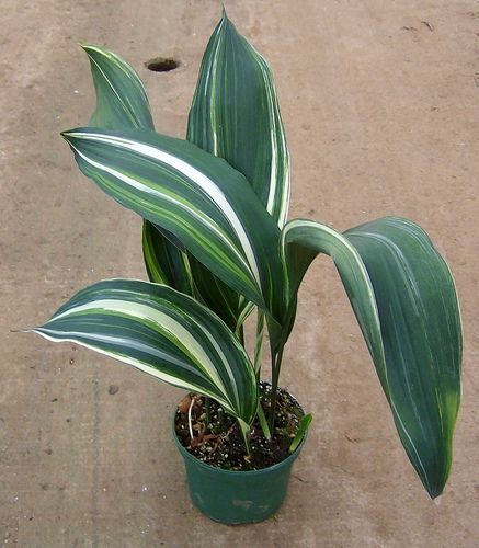 Виды и сорта: Темно-зеленые листья А. высокой (A. elatior) переносят загрязненный воздух и плохой уход, но прямые солнечные лучи могут их обжечь. Есть более декоративные, но менее выносливые сорта «Variegata», с кремовыми полосками на листьях; сорт «Versicolor», у которого кремового цвета может быть почти половина листа; «Sekko Kan» листья кремовые с зелеными краями и зеленой полоской по середине.
