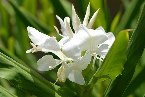 Виды и сорта: Проще всего вырастить Г. Гарднера (Н. gardnerianum) высотой 1,2 м; у его желтых цветков ярко-красные тычиночные нити. В районах с мягким климатом это растение можно выращивать как многолетник возле выходящей на южную сторону стены дома. В других местах корневища проращивают в контейнере с торфом в марте и высаживают в открытый грунт в июне. Осенью корневища выкапывают и хранят зимой в помещении. У Г. корончатого (Н. coronarium) белые цветки, у Г. ярко-красного (Н. coccineum) — красные, розовые или оранжевые.
