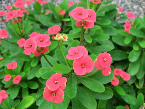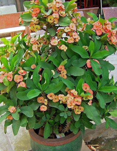 Виды и сорта: Наиболее популярен М. Миля (Е. milii), или М. блестящий (Е. splendens), его еще называют «Христов Венец» (за большие колючки и похожие на капли крови ярко-красные цветы, по легенде именно из него был сделан венец, который надели на голову Христу). На его высоких стеблях распускаются крошечные соцветия, окруженные эффектными кроющими листьями обычно красного, лососевого или желтого цвета. Длительность цветения зависит от яркости освещения, обычно молочай блестящий цветет с ранней весны до середины лета, но при хорошем освещении может цвести практически весь год. Сок молочая ядовит и может вызвать раздражение на коже. М. сверкающий (Е. fulgens) встречается реже, за ним труднее ухаживать. Его дуговидно изогнутые гладкие стебли не похожи на стебли блестящего, но соцветия имеют такое же строение.