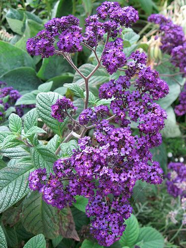 Представляет собой теплолюбивый многолетний кустарник, который выращивают как однолетник. Выбор видов ограничен. Мелкие цветки образуют крупные соцветия. Вечером растения издают приятный аромат, поэтому их рекомендуют располагать ближе к дому или высаживать в подвесных корзинах и кадках. Соцветия гелиотропа могут достигать 15 см в диаметре и привлекают в сад бабочек.