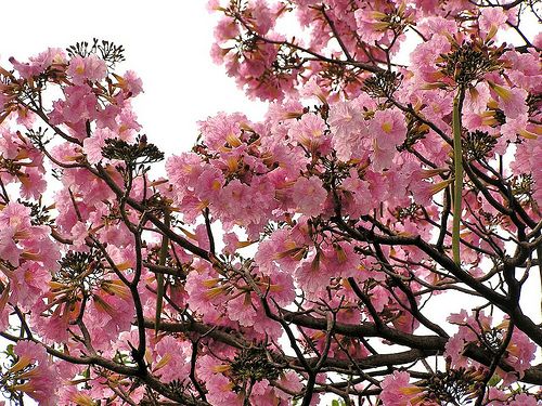 Виды и сорта: Самый неприхотливый и распространенный вид Т. золотистая (T. chrysotricha) или «золотое дерево» - это листопадное дерево высотой примерно до 12-15 метров. Цветет трубчатыми канареечно-желтыми цветами. Есть разновидности с цветами других расцветок - Т. белая (T. roseo-alba) с белыми цветами, высота деревьев до 15 м. Т. розовая (T. impetiginosa) или «муравьиное дерево», высота дерева до 30 м, цветы ярко-розового цвета.