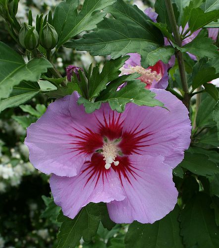 У кустарниковых гибискусов в продаже бывают почти исключительно сорта Г. сирийского (Н. syriacus), достигающего размеров 2,5 х 2,5 м. Из сортов с одиночными цветками наиболее популярен «Blue Bird» с фиолетово-голубыми, с темным глазком цветками диаметром 8 см. Широко распространены чисто-белый «Diana» с бледными листьями, белый с малиновым глазком «Hamabo», розовый с темным глазком «Woodbridge», темно-фиолетовый «Russian Violet», розовый «Pink Giant» с крупными цветками и белый с малиновым глазком «Red Heart». У других сортов цветки расположены попарно (например, у сорта « Lady Stanley» с белыми лепестками и красной серединкой), но они плохо цветут в дождливое лето. У Г. китайско-сирийского (Н. sinosyriacus) куст более раскидистый, чем у Г. сирийского.