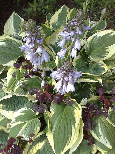 Виды и сорта: При покупке хосты обязательно прочитайте этикетку, так как взрослая листва может отличаться от молодой. Хосты бывают высотой от 15 до 90 см и цветут в июне-августе. В густой тени выращивают только цельнозеленые хосты, такие как X. «Royal Standard» (сердцевидные листья, белые цветки), X. вздутая — Н. ventricosa (сердцевидные листья, сиреневые цветки), X. Зибольда (Н. sieboldiana) «Elegans» (сердцевидные листья, белые цветки) или X. ланцетолистная — Н. lancifolia (ланцетные листья, лиловые цветки). Пестролистные и голубые сорта предпочитают полутень. Наиболее распространены X. Форчуна (Н. fortunei) «Albopicta» (кремовые листья с зеленой каймой) и «Aureomarginata» (зеленые листья с кремовой каймой), X. «Ground Master» (зеленые листья с белой каймой), X. «Halcyon» (голубые листья), X. «Blue Angel» (голубые листья), X. «Francee» (зеленые листья с белой каймой), X. «Wide Brim» (зеленые листья с кремовой каймой). Сортам с цельножелтыми листьями, таким как X. «Golden Prayers», X. «Piedmont Gold» и X. «Zounds», нужно солнечное место с некоторым притенением в полдень. Есть карликовые сорта для альпинария, например X. «Blue Moon» (10 см, голубые листья) и X. «Ginko Craig» (25 см, зеленые листья с белой каймой).
