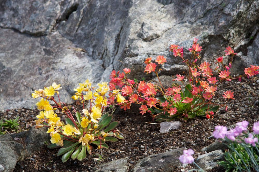 Виды и сорта: Наиболее распространены гибриды Л. чашечника (L. cotyledon) высотой 20-30 см с цветками диаметром 4 см, распускающимися в мае-июне. Примеры: «Sunset», «George Henley» и «Ashwood Ruby». Белые или бледно-розовые цветки Л. Твида (L. tweedyi) крупнее, но этот вид, так же как и Л. оживающая (L. rediviva), часто вымокает зимой. У всех этих видов зимующие листья. К летнезеленым относятся Л. короткочашечковая (L. brachycalyx) с белыми цветками и миниатюрная (8 см) Л. карликовая (L. pygmaea).