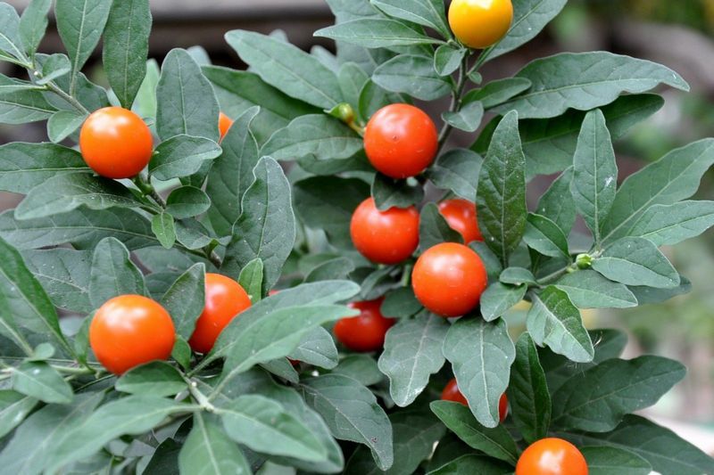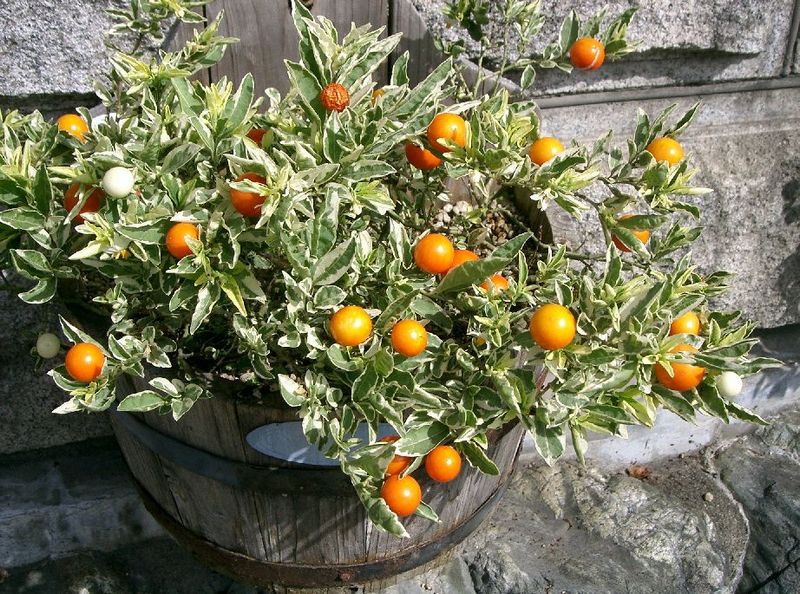 Летом паслен цветет крошечными цветками, затем образуются зеленые ягоды, которые по мере приближения зимы меняют цвет. Растение с оранжевыми или красными ягодами на фоне темно-зеленой листвы обычно украшает дома на Новый год. Если этот небольшой кустик разместить на солнечном подоконнике в прохладной комнате, то ягоды продержатся в течение нескольких месяцев. У близкородственного вида - иерусалимской вишни более крупные ягоды. Будьте осторожны: ягодами паслена можно отравиться. П. перцевидный обычно сохраняет ягоды до февраля. Более раннее опадение листьев, как правило, свидетельствует о переувлажнении почвы, опадение ягод - о недостатке света или сухом и слишком теплом воздухе.