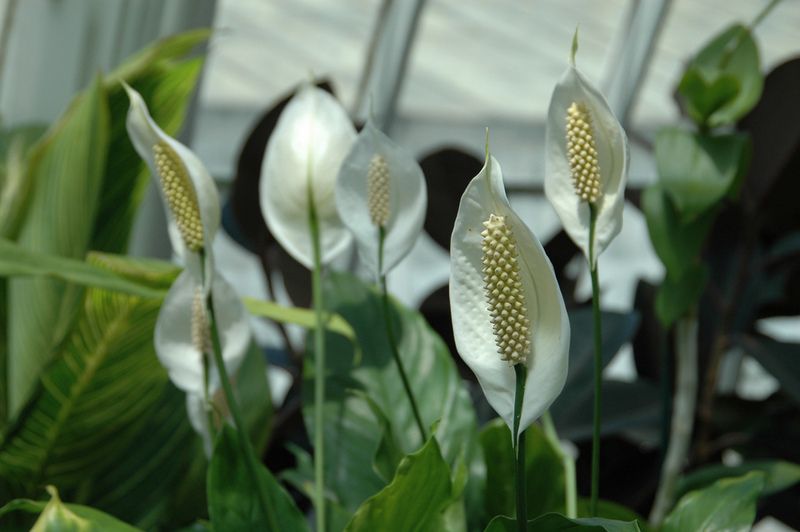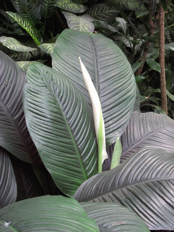 Спатифиллум хорошо растет при рассеянном свете в хорошо отапливаемой комнате. Его оберегают от сквозняков, горшок помещают во влажный торф или на поднос с галькой. Блестящие листья выходят прямо из почвы; цветет весной и иногда повторно осенью.