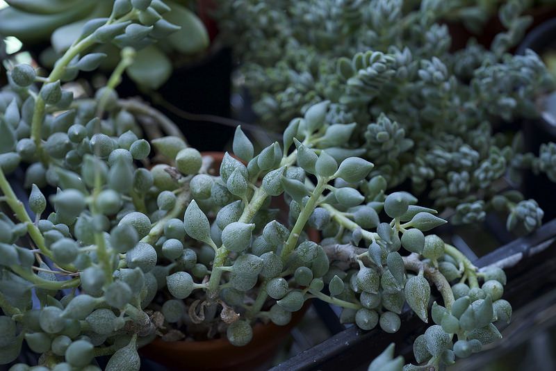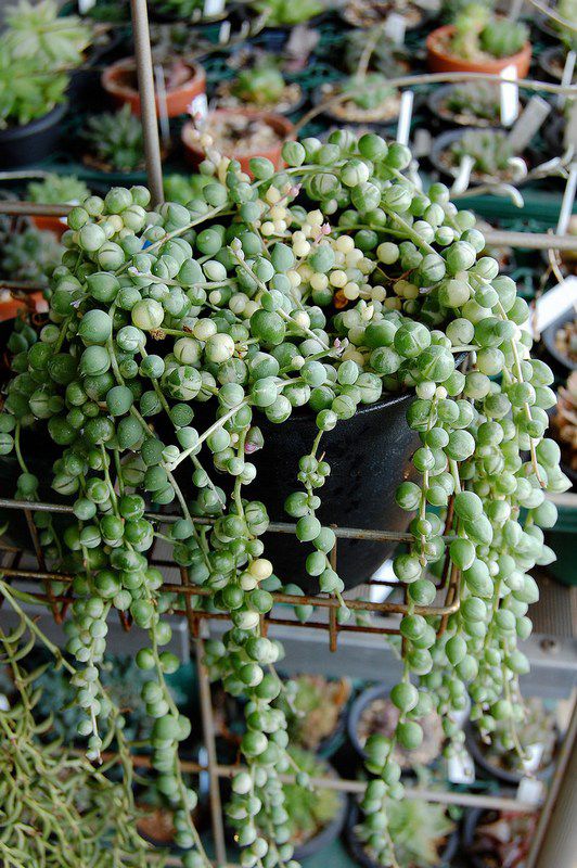 Растения этой группы выглядят действительно странно - на свисающих стеблях растут круглые бусинки-листья.