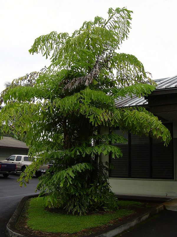 Кариота мягкая (нежная). Дает от корня дополнительные отпрыски, так что взрослое растение представляет собой куст (буш) с несколькими тонкими стволами. Несмотря на то, что отдельные стволы после цветения и плодоношения отмирают, кариота-буш в основном живет долго.