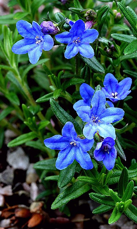Почвопокровное растение с узкими листьями и стелющимися стеблями. У самого популярного вида очень яркие голубые цветки. Растет на солнечном месте на плодородной почве; при посадке в почву вносят садовый компост или торф. Другое его латинское название — литодора (Lithodora)