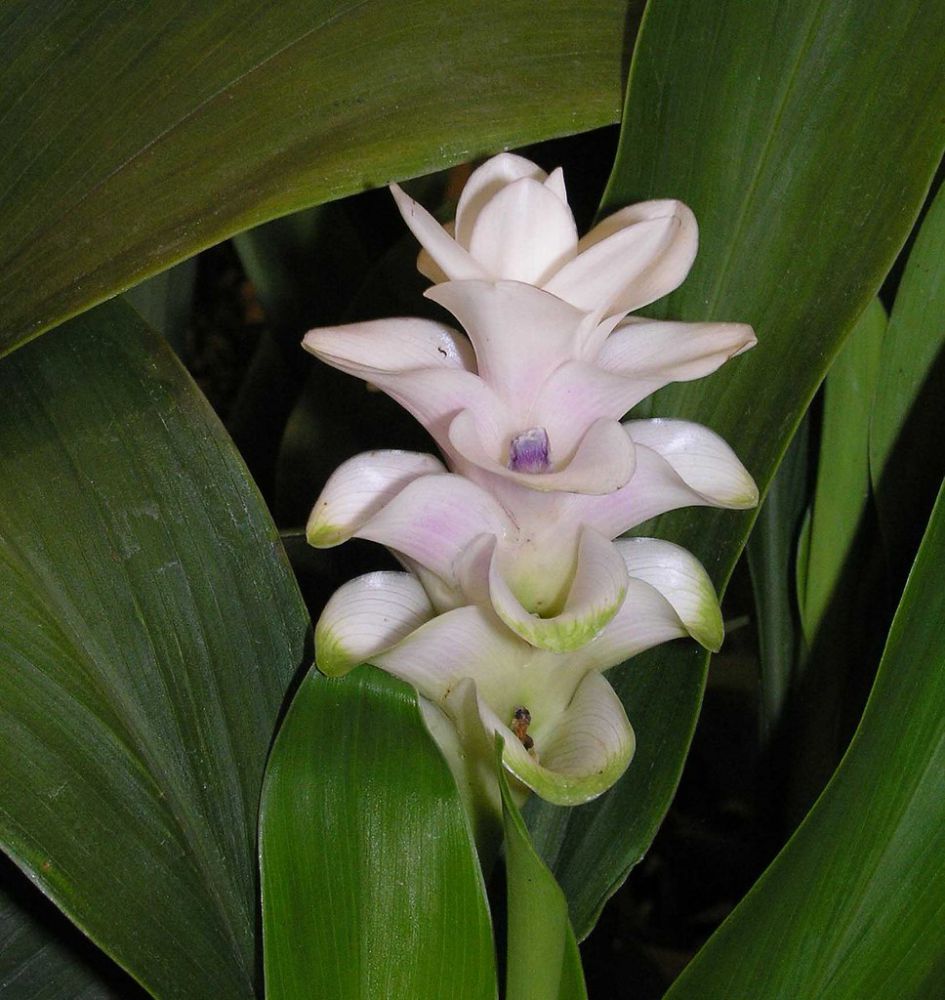 Виды и сорта: Прицветники К. роскойской (С. roscoeana) из зеленых становятся оранжевыми, а затем оранжево-красными. Есть виды с более мелкими соцветиями, например К. частухолистная (С. alismatifolia). Можно выращивать и обычную, съедобную К. длинную (C. longa), цветет она белыми или сиреневыми соцветиями, бонусом будут ароматные корневища.