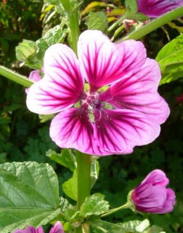 Виды и сорта: На пакетах с семенами может быть написано «М. трехнадрезная (М. trifida)» или указан сорт «Grandiflora». Высота 90 см, расстояние при посадке 45 см, цветет в июле-октябре. Смесь окрасок «Excelsior Mixed» дает растения с белыми, розовыми и малиновыми цветками, иногда с четкими прожилками на лепестках. Малопа обильно цветет и редко нуждается в опоре.