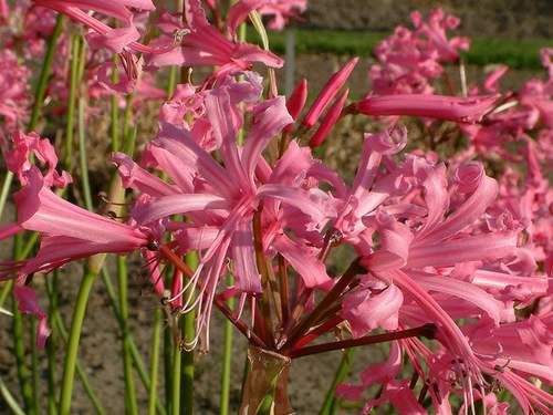 Виды и сорта: Розовоцветковая Н. Боудена (N. bowdenii) высотой 60 см цветет в сентябре-октябре. Воронковидные цветки диаметром до 8 см с узкими отогнутыми назад волнистыми «лепестками» венчают безлистный цветонос. Цветки долго не увядают. Листья появляются в конце лета, сохраняются до весны и отмирают следующим летом. У сорта «Pink Triumph» серебристо-розовые цветки.