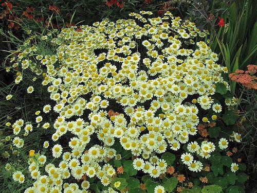Яркое растение для переднего или среднего плана бордюра, цветет с короткими перерывами с начала июня по сентябрь. Листья перистые, многочисленные ромашковидные соцветия состоят из белых, светло-желтых или желтых краевых цветков, окружающих золотистую серединку. Стебли могут нуждаться в опоре, после цветения их срезают.