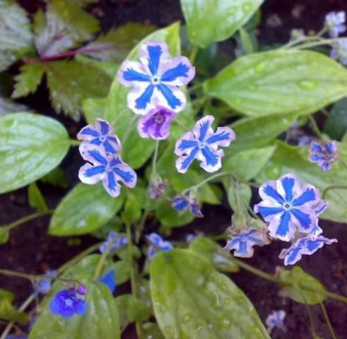 Цветет весной белыми или голубыми цветками, похожими на цветки незабудки. Цветки собраны в рыхлые соцветия, листья зимуют. Предпочитает плодородную почву, хорошо растет под кустами или деревьями. При посадке в почву вносят торф, садовый компост или листовой перегной, весной почву вокруг растения мульчируют.