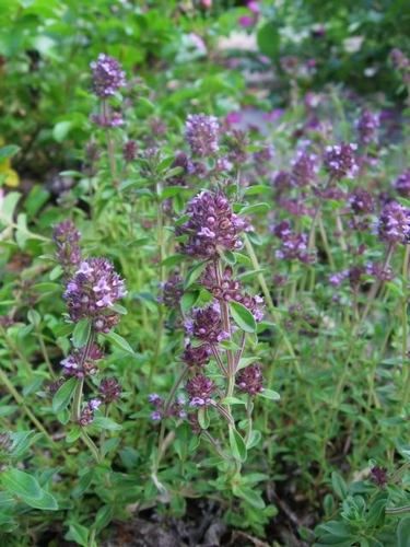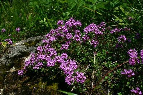 Тимьян чаще выращивают как пряное, чем как декоративное растение. Между тем это неприхотливое растение в начале лета обильно цветет. Ковровые виды высаживают в альпинарии или между плитами дорожки, поскольку тимьян исключительно устойчив к вытаптыванию. Кроме того, его ароматные листья, когда на них наступают, издают приятный запах. При выращивании тимьяна нужно иметь в виду, что он не любит кислых тяжелых почв, а его кустовидные формы весной нужно обрезать.