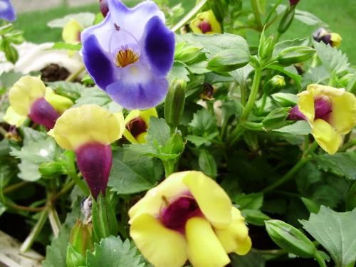 Это однолетнее растение цветет летом, его можно разместить на подоконнике. Выращивают из семян, которые высевают ранней весной. Стебли быстро вытягиваются - для усиления ветвления их концы прищипывают и подставляют опоры. Цветки очень своеобразны: венчик цветка лиловый, с темно-фиолетовой нижней губой и ярким желтым пятном. Растение неприхотливо - держите его в хорошо освещаемом месте, регулярно поливайте и избегайте сквозняков.