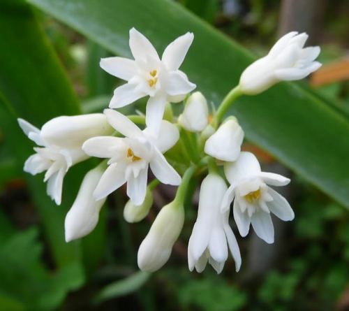 Виды и сорта: В культуре принята цветущая в июне-августе Т. фиолетовая (Т. violacea) высотой 60 см. Душистые бледно-лиловые цветки длиной 1,5 см собраны в зонтиковидные соцветия на верхушках цветоносов. Обычно выращивают не исходный вид, а сорт «Silver Lace» с пестрыми листьями. Карликовая (высотой 15 см) Т. натальская (Т. natalensis) с белыми цветками более морозостойка.