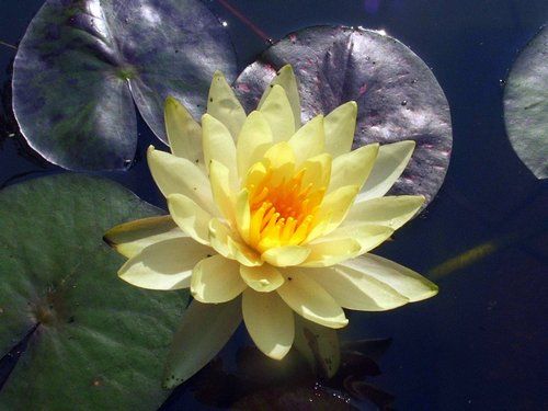 Сорт австралийской селекции. Лепестки нежно-желтые, тычинки желтые. Цветы находятся до 6 см над поверхностью воды, диаметр цветка 12 см. Листья овальные, темно-зеленые на солнце и красно-коричневые в тени, края листьев слегка волнистые и немного загнуты вверх. Диаметр листьев 23 см. Сорт похож на К. марлиевую «Chromatella», но не так сильно разрастается, листья с коричневыми пятнами, цветет не столь обильно.