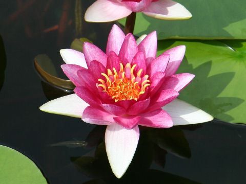 Кувшинка селекции Латур-Марлиака 1910 г. Лепестки розовые, внутренние со временем темнеют до карминно-красного цвета, тычинки ярко-желтые. Цветки шаровидные, с широкими лепестками, 16-22 см в диаметре, чашелистики у основания белые. Цветки располагаются чуть выше воды, стебель цветка ворсистый. Листья овальные, бледно-зеленые. Цветет обильно, сильно разрастается, подходит только для большого пруда.