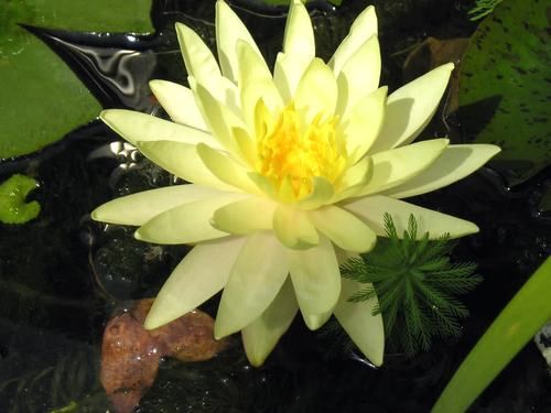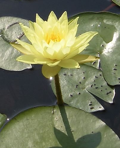 Кувшинка селекции Кирка Строна 1993 г. Цветок бледно-желтые, чашевидной формы, цветы на высоте около 5 см над поверхностью воды, диаметр цветка 12-14 см. Листья почти круглые, темно-зеленые, около 20 см в диаметре. Теплолюбива, цветы страдают от дождя.