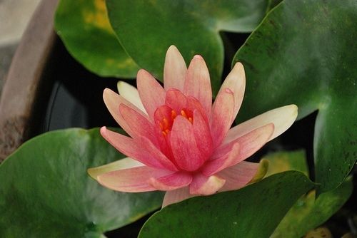 Кувшинка селекции Кирка Строна 1993 г. Цветок в первый день медно-оранжевый с светло-розовой серединкой, затем цветок становится краснее с каждым днем, цветок 8 см в диаметре. Листья круглые, темно-зеленый с большим количеством коричневых пятен, разрез очень широкий, размер листа около 10 см в диаметре. Обильное цветение, подходит для горшков и мини-прудов.